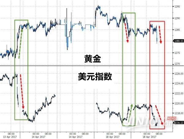 周三(4月12日),地缘及欧洲政治风险持续发酵,黄金受到追捧,金价触及五个月高位后回稳。收盘后,因特朗普发表美元过强以及有利中国评论,特朗普称支持美联储实行低利率,并保留提名耶伦连任可能,随后美元骤跌,黄金跳涨。 美元周三全线下跌,此前美国总统特朗普称,美元过强,他支持美联储将利率维持在低位。美元指数在
