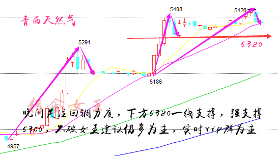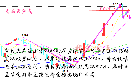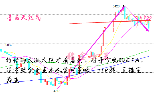 猎金女王:双EIA300点后,天然气原油仍看多中线操盘策略 【天然气行情分析及操作建议】: 先来回顾昨日行情: 昨日天然气白盘天然气处于一上震荡行情,相对来说走的比较缓慢,欧盘附近价格5300附近有所回调近100个点,女.王本人在此高位布局的空单也达到了60个点的盈利;美盘后价格有所反弹,本人昨天的一个看空思路,反弹
