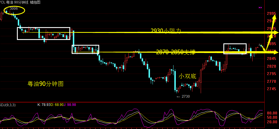 原油由于中国燃油出口大增以及伊拉克和尼日利亚原油出口增加,均令原油市场供应过剩担忧再度升温,同时美国上周石油活跃钻井数连续第八周增加,令投资者担忧油价接近50美元关口激发了美国产油商的增产意愿,此外,美元回升也令油价承受了一定压力。 粤油昨日如期下行,空单获利连连。在日线黄昏之星看跌形态作用下,早间开