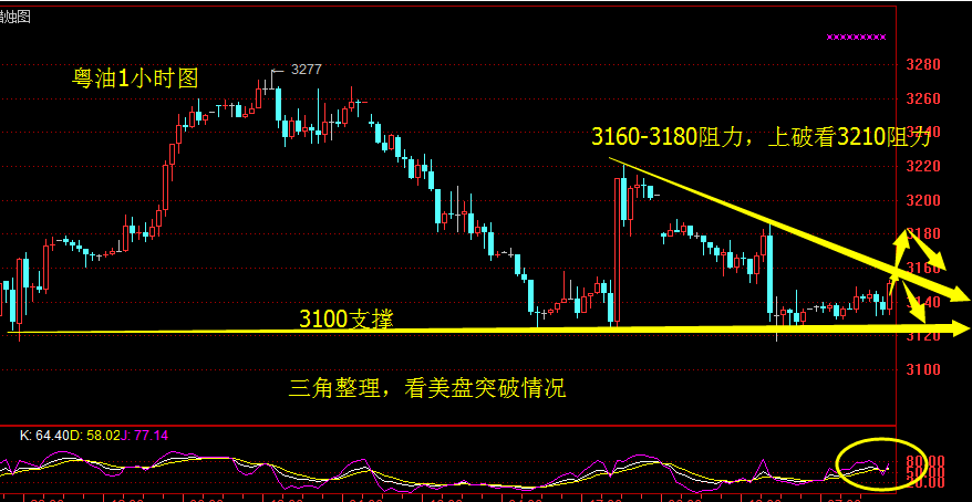 【月玲献金】8.25粤油晚间考验4小时中轨阻力 基本面的东西大家都看腻了,也没什么好写的,近期都是会围绕9月欧佩克会议进行炒作,欧佩克主要成员预计会时不时发出信息扰乱市场,投资者要控制好风险。 昨晚美国库存EIA大幅增加,但下跌空间有限,没有跌破3120-3100支撑,今天亚盘持续抗跌,维持在3130附近整理,欧盘开盘后震