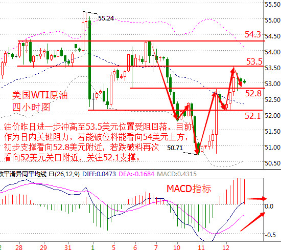 金盘神手:1.24早评今日原油黄金白银行情走势做单操作指导 行情回顾 美国WTI原油3月期货周一(1月23日)收跌0.47美元,或0.88%,报52.75美元/桶。布伦特原油3月期货周一收跌0.26美元,或0.47%,报55.23美元/桶。油价周一微跌,因迹象显示美国活跃钻机数量强劲反弹,这盖过了石油输出国组织(OPEC)与非OPEC产油国遵从减产协议对