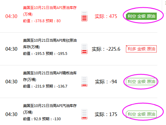 金盘神手:10.26API数据利空,今日原油沥青天然气行情分析与做单指导 北京时间周三(10月26日)凌晨4:30,美国石油协会(API)公布的数据显示,截至10月21日当周,美国API原油库存意外大增475.4万桶,至4.719亿桶,预期增加80万桶。库欣原油库存减少225.6万桶,与此同时,API汽油库存意外大增127.1万桶。美国WTI原油期货价格在
