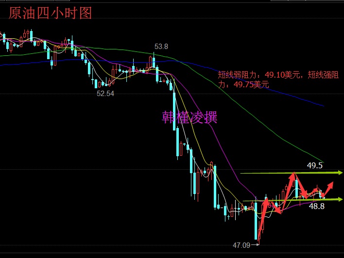 韩槿凌:3.16加息后,日间黄金白银原油分析操作建议附解套 文/韩槿凌 【原油技术分析】 昨晚原油价格在EIA数据公布后虽然短线冲高回落,不过整体看行情波动并不是很大,上方最然上破48.8美元的压力,不过未能企稳便回落,今日做单我们继续关注48.8-49美元区域的压力;而下方支撑继续关注48美元关口即可;整体看目前原油价格
