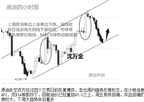 今晚EIA大获全胜 现货原油沥青技术分析 今日原油沥青日内小幅反弹之后,一直维持在高位震荡,这也是让沈万金分析的下跌一直没有得到确认,但是在EIA数据要出来之前,行情也是来了一波下跌,这也是完全符合沈万金日内的分析。而预计EIA数据我在数据没有出来之前就预测数据利多,但是又有多少人信呢? 日线上看,目前油价已然