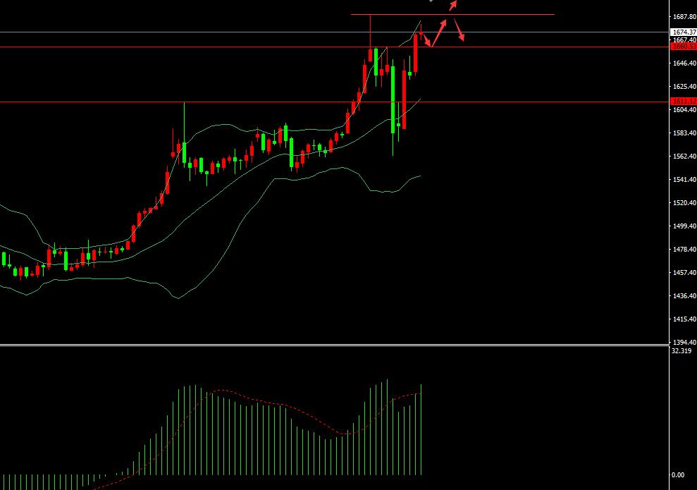 继周一日线收阴线之后,黄金周二再次大幅下跌,自日内高点1680美元一线最低跌至1649美元,日内跌幅超30美元空间,趋势偏弱接下来还有进一步下跌的可能。另一方面原油今日有所反弹,早间开盘之后走震荡上行,最高涨至45美元下方开始回落,走势相对来说较为温和,目前来看属于大幅下跌之后的获利了结走势。其实市场从来都不是一成不变的,关键是你能不能根据目前的走势和市场消息面提前分析出接下来行情走的方向,这一点才是关键。别人看多你跟多别人看空你追空那么最终接盘的就永远都是你,眼光和远见是在这个残酷市场上面生存的关键,你不是专业的没关系,但是你选择合作的老师一定得专业,这样才能有效规避风险作出正确的选择。