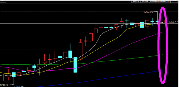 消息面: 上周五特朗普精心规划的医改法案被迫搁浅,但是这没有影响川普接下来继续推行税改计划的信心,然而市场不买单,市场质疑他推进税改和支出计划的能力。经过周末的发酵,黄金周一开盘跳空高开高走,早盘高开高走,午后修复盘整,欧美盘继续创新高,这是惯用的走势规律。 早盘延续高开涨势,最高到1258后盘整,欧盘再