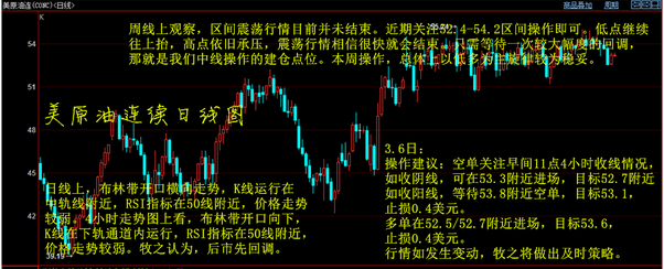 行情回顾: 油价周一反弹收复部分失地,亚盘开盘守住上周低点52.50一线震荡,欧盘开盘后在此位之上52.74一线走反弹,美盘延续欧盘的余温反弹。小幅震荡上升至53.50高点,最终收盘在53.0.日图收盘十字K线。 消息面解析: 周二(3月7日),俄罗斯能源部长诺瓦克(Alexander Novak)表示,OPEC减产协议的达成导致油价波动更小以及