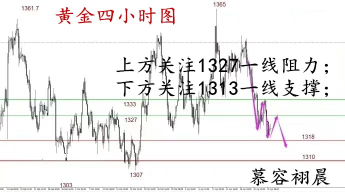 温馨提示:投资有风险入市需谨慎,以上分析仅个人观点,仅供参考。(mryc68) 黄金下周行情技术分析: 金价于昨日跌破1320关口后,一直处于此点位下方横盘整理中,当前位于1321美元附近,仍有进一步下行空间。黄金目前处于不断创新低的空头趋势中。日线图上,近三个月箱体震荡,而近一周形成单边回落下跌走势。日图延续阴线
