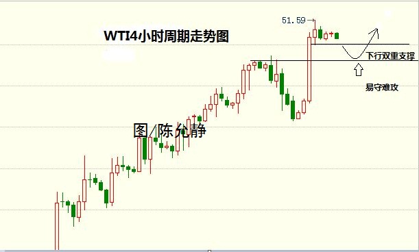 回顾昨日原油走势,算是原油超级交易日了,昨日原油还是保持了持续走高格局,亚盘开盘即慢涨。强势整理修正向上。虽然亚欧盘上升空间不算大。但技术面强势整理代替了回落修正,这也就是陈允静常提到的时间换空间。使得多头支撑稳固上升。而到了美盘时段,万众瞩目的EIA库存数据登场,符合陈允静预期的大幅减少。助推原油强