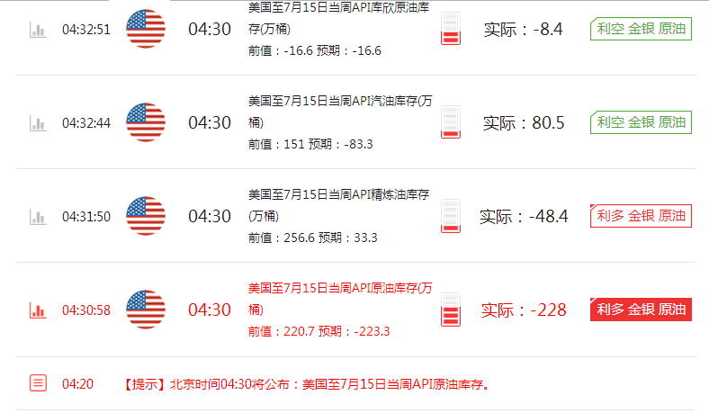 消息面 美国石油协会(API)周二公布数据显示,7月15日当周API原油库存减少228万桶,降幅略高于预期。API数据公布后,美油布油短线小幅震荡。陆上储存收紧,燃料价格下跌,促使交易商利用海上储存设施储存柴油,用于未来的交割。即使原油产出下降,但一些人士表示,价格持续反弹的势头可能难以持续,因供过于求。 周二(7月
