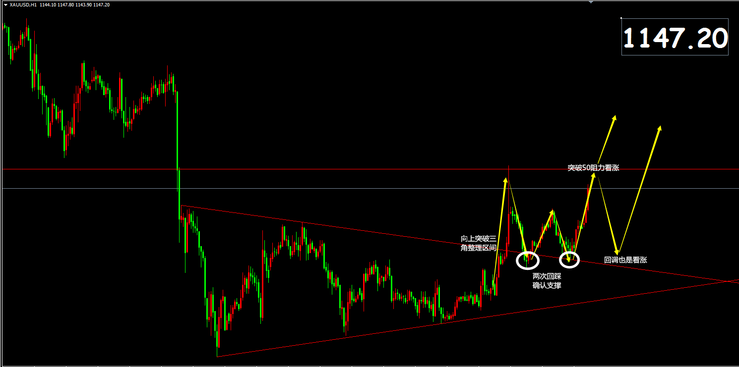 昨天舒宇秦才说到本周黄金将要迎来多空方向选择,结果哪知道,幸福来的如此突然,行情也来的如此之快,昨日下午欧盘前黄金快速上涨,直接突破前期多头大敌的1145强阻力,最高涨到了1150的位置,不过好景不长,出人意料的大涨之后黄金并没有继续拉升,也没有保持住胜利果实,反而直接转头向下,一连跌到了半夜,一波强势过山