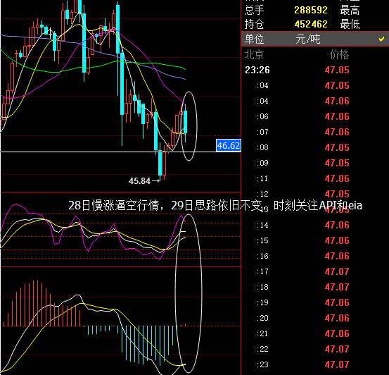 沥青行情分析: 日线方面,昨日收取了一根上下影线均长的阴柱,5日、10、20日均线形成死叉粘合运行,布林带开口略微向下,行情运行于布林下轨。四小时方面,60日均线下穿5、10、20日均线形成死叉,均线系统呈空头排列,布林带开口向下,K线运行于布林带下轨,本人认为,目前主导国际原油油价的因素非常复杂,这周影响美原油