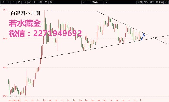 伦敦银行情分析: 伦敦银上交易日(8月16日)开盘19.83美元/盎司,盘中最高20.1美元/盎司,最低19.71美元/盎司;日收盘19.79美元/盎司,收十字阴。今日亚盘时段,现货白银价格区间震荡。 笔者若水昨日预计白银上方阻力依旧关注20.1,因此给出20.1美元附近空单建议,文章见《若水藏金:8.16白银区间震荡,日内高抛低吸》,果