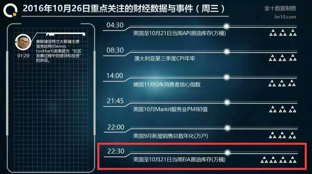 前言 人生,该显的要显,该藏的要藏,是一种境界。常与高人交往,闲与雅人相会,乐与亲人分享。路是一步一步走出来的,情是一点一点换回来的,人生也是这样一页一页真实翻过来的。 消息面 北京时间周三(10月26日)凌晨4:30,美国石油协会(API)公布的数据显示,截至10月21日当周,美国API原油库存意外大增475.4万桶,至4.719