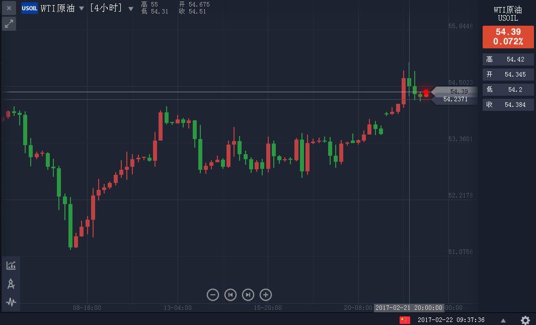 行情回顾: 美国WTI4月期货周二(2月21日)收涨0.66美元,或1.24%,报54.06美元/桶。 巴尔金都昨日出席行业会议时指出,OPEC成员国在2017年1月的减产执行率超过90%,其中沙特计划100%执行减产协议。他同时表示,OPEC成员国有意进一步提高这一数字,希望在适当时机能够达成100%执行率,同时预计有更多产油国将加入减产协议。