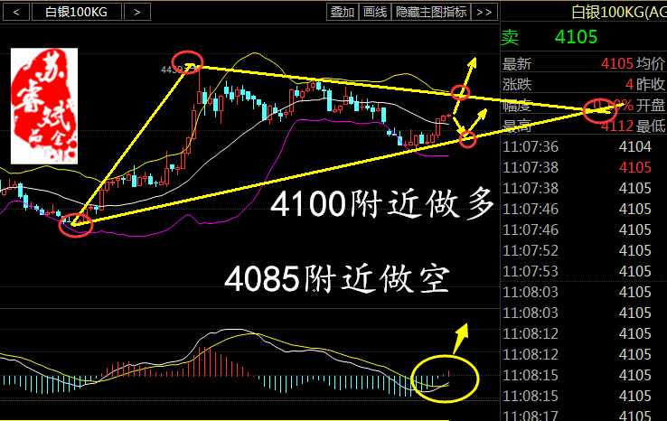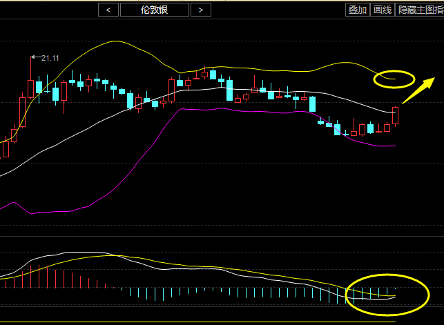 苏睿斌:白银空单能出了吗?天然气多单被套解套,原油沥青空单解套 白银空单被套现在跌了还能跌吗? 睿斌从技术上来看,日线收阳,已经达到可怕的5连阳局面,布林带缩口运行,MA5MA10均线金叉向上运行,附图MACD也是金叉运行,红色动能指标弱势,从4小时来看布林带呈现向上走势K线位于布林带上轨附近,MACD技术指标呈现金叉