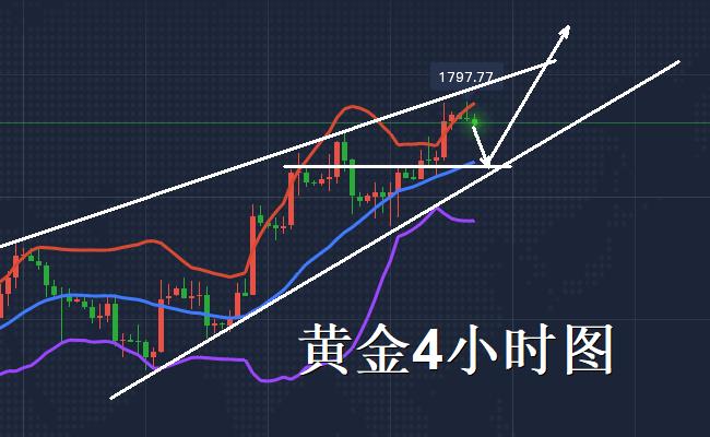 现货黄金周三最低触及1776美元,最高触及1797.5美元,收取一根大阳线,又刷新了高点,是一个强势的多头状态。周三有强调后市的节奏以震荡偏涨为节奏,但短期有回调的需求,行情昨日虽有回调,但是回调空间没有达到预期,周四和周五面临周线收线的时候再发力。隔夜的大阳线加上尾盘的回路幅度较小,今日的思路以看续涨为主,亚盘小幅回落,博欧美盘继续延续新高行情,而回落节奏上关注前一交易日美盘回落的低点。亚盘回落支撑上关注1788美元,欧美盘高点阻力关注1800美元的破位情况和1815美元阻力的试探。 黄金早盘冲高后高位横盘震荡,目前最低回落到1788附近,也就是昨日欧盘高点的顶底转换支撑。美元指数已经触及