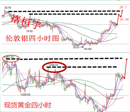 自非农后,美联储加息的预期逐渐降低,白银打破前期18.5美元附近的桎朽,突破至20美元附近,周一受美国就业状况指数不及预期影响,美指大跌,白银受到支撑,虽然目前跌破20美元,但是下方支撑强劲,白银后市依然看涨不变。