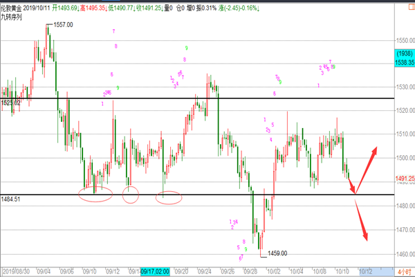 黄金: 昨天的黄金价格在未能破位38.2%的1518一线后开始跳水,跌幅一度达到了1.7%大跌26美金,我们先来复盘亚盘阶段黄金开盘急涨12美金,在触及1518一线没有继续走高,开始走跌,欧盘跌至1504一线后企稳走震荡,美盘受到基本面的影响开始走跌,先是失业金数据好于预期美元大涨黄金开始走跌,后续主要是受到中美的贸易谈判开始了,贸易紧张形势得到缓解;大家可以看到只要是主线方面的消息走预期,黄金的跌幅都是比较大的,昨天我们在文章中给到的思路是高空,并在1518-20给到空单策略,盘内是没有进去的,那么今天的黄金我们应该怎么操作呢? 1、 据新华社,当地时间10月10日上午,中共中央政治局委员
