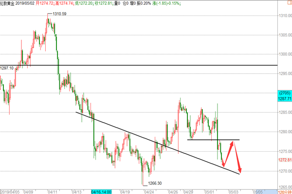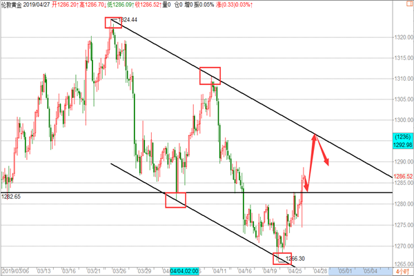 黄金: 到了这个点,看晚上两点有美联储的数据,帮主想了下还是写点东西与大家分享,每一次的利率决议的波动都是比较大的,那么今晚的行情我们应该怎么操作,首先来回顾下今天的走势,黄金今天亚盘阶段在走出一波回撤行情至1277最低点,欧盘开盘后走出一轮急拉行情至1282一线,美盘受到小非农ADP数据影响走出一轮跌势后,美盘十点左右受到美元下跌的影响,黄金走出一轮大涨行情至1285一线日内最高点后市再次回落至1280附近企稳震荡等数据,我们今天的早评给到1280-81多的思路目前来看是没毛病的,黄金多级别多周期的底部结构已经走出来,那么今晚的利率决议能不能在助黄金多头一波呢? 基本面: 周三(5月1日)