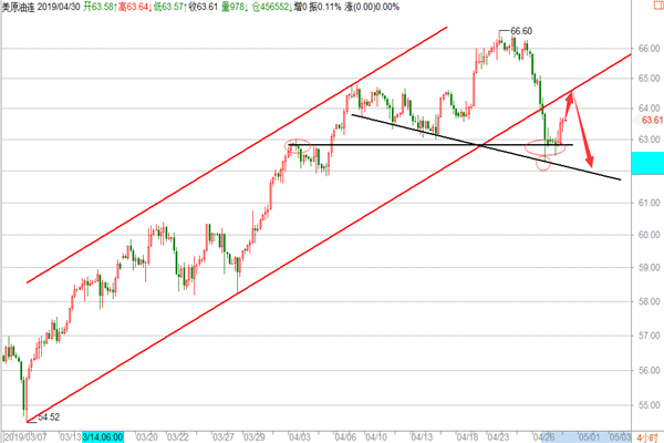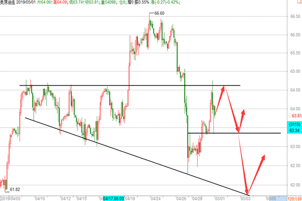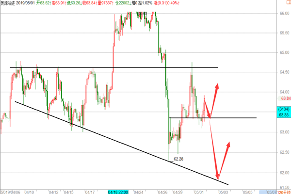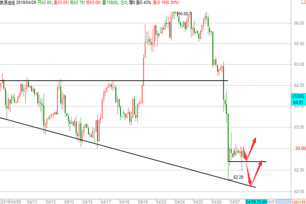 原油: 一周一次的EIA再次来袭,本次EIA携手五一长假,祝大家在节日里玩的开心,帮主会站好最后一班岗,为您的投资之路保驾护航,话不多说进入今天的主题,今天亚欧盘原油整体上走的比较抗跌,在亚盘跌小幅回落至63一线后,欧盘开始反抽,一度涨至63.8一线后,开始企稳,盘内我们在早评中给到站稳63.3一线做多看法那天思路是比较精准的,那么今天的原油EIA我们应该怎么操作呢? 首先来看下今天的数据:早间的API数据显示前值686万桶,预测值128.5万桶,公布值为681万桶,对比前值小利空,对比预测值大空利空,再来看EIA数据,前值547.9万桶,预测值148.5万桶,综合分析得到以下几点: 1、