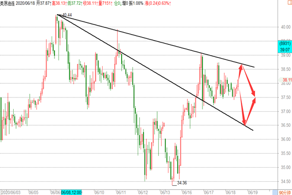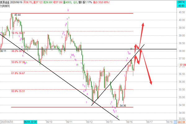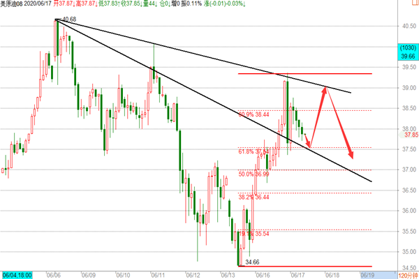 今天是2020年6月17日星期三, 隔夜的黄金原油整体上没有出现太大的行情,黄金依然跌一波涨一波的,从亚盘的1733一波跌至1721,欧盘再次反弹至1730-3区域后遇阻,美盘受到美国5月零售销售增幅创下史上最大单月涨幅一波利空,黄金也跌下来了最低至1716一线,后市美联储官员的一波讲话,黄金由跌转涨再次回到1730附近,后市小回落收尾,这也是近期的一个常态了, 金价也确实在走跌,但为什么跌不下来,主要的原因在于基本面的影响,但中长期的基本面是没有变化的,只是短期内有些事件及美联储政策方面的短期因素导致的,使得黄金在打下来后在打上去,就像上周的利率决议一样,数据上来说利空,但后续的美联储主席