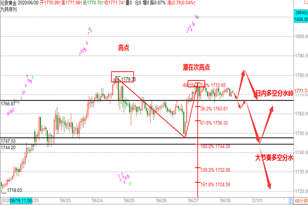 今天是2020年7月2日星期四,隔夜的黄金是不是很打脸,这种行情对于喜欢追单及带有主观意识的朋友来说是很难受的行情,前一日的刷高,后一日的跳水,能涨20美金就能跌30美金 ,这跟帮主之前的思路是一致的,这一波行情我们在上周的周评就已经明确的告知大家本周三周四是黄金的窗口,隔夜黄金怎么走的大家都看到了,从1789一线跌至今天的1759一线,30美金的跳水行情,就跟昨天的文章标题一样,刷高后切勿追高,在周二的文章( 帮主:黄金多周期顶部结构等信号,原油隔夜多空双双开花!)中我们已经详细的分析了黄金刷高和不刷高的走法,现在回过头来看看是不是这么回事呢?盘内的1780的空单目前已经有10多美金的浮盈