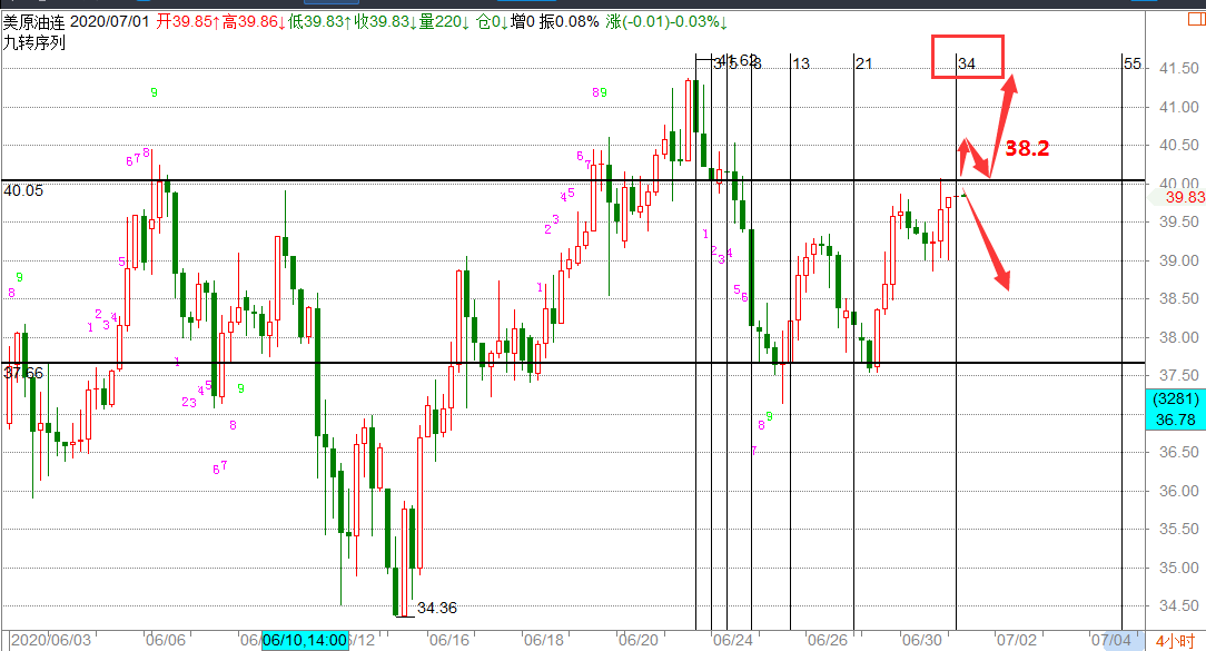 今天是2020年6月30日星期二, 六月的最后一个交易日,近期的黄金原油都已经到了关键的变盘时间窗口,隔夜黄金没有出现太明显的行情,主要以震荡为主,下方最低打到了1765.5一线,最高到了1774-75区域,我们在昨天公众号推送中明确给到这里企稳短多思路,没有什么毛病,黄金在经历了1779.3的高点后,这一波的反弹力度明显不及之前,没有在给到1779的位置,从目前的整体上来看,黄金目前继续在确认真假突破的逻辑思路内运行,没有刷高的情况下,黄金假突破的可能性就会增加,本周又将迎来非农数据,这给到黄金后市的不确定性,在这里我们也不去猜测,后续等今天走完后,应该就会有信号出来,届时帮主再来继续跟进