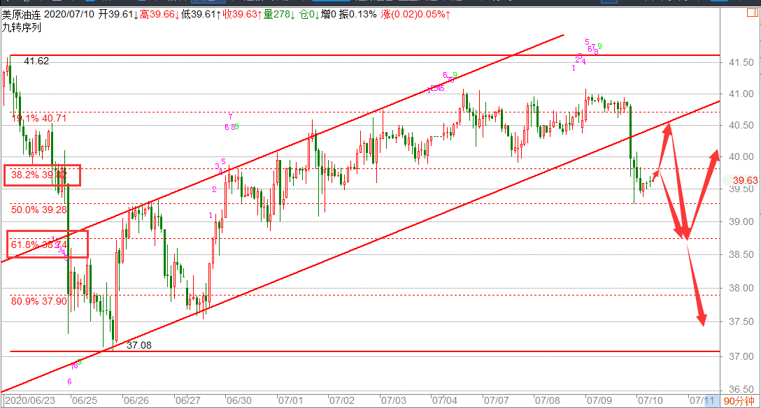 今天是2020年7月10日星期五, 好几天没有更新文章了,上周本来是写好周评了,但周末临时有点事情,加上上周五提前休市也没什么好写的,本周的周一周二由于朋友结婚,不得不去参加,周三才回来,加上这几天黄金原油的行情都比较清淡,没有太大的波动,帮主也一直在观察持仓中,黄金在上上周四的非农后,走出一波探底回升后,最低至1757这一波我们从上周的非农就已经有预期了,我们在非农当天盘内都还在说大概率走探底回升,只是当时由于数据确实太强,我们把下方1761附近的多单撤掉了,拿的1780的空,经过这几天的走势被扫保护出局,我们是有在1776-78区域继续空黄金,1810-15区域继续加仓空的黄金,隔夜的金