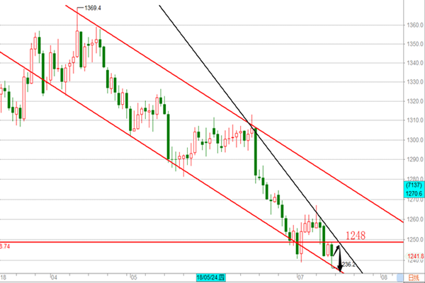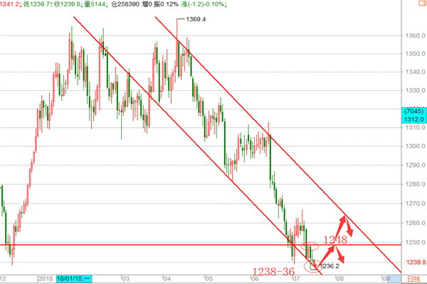 黄金: 上周帮主把黄金接下来的一个走势分析的已经很透彻了,今天的早评我们主要来分析下日内的行情,上周的1247中线空单继续按计划去执行,上周已经过去,不愉快的也好还是开心的也好统统是过往云烟,把握好接下来的行情才是王道,废话不多说直接进入主题,日内黄金我们需要主要那几个点: 小时级别目前金价依然在下行趋势线内运行,不过需要主要在刷新低至1236之后,迅速反抽至1243.8一线,反抽力度过大,日内不排除继续回到1248一线的可能,四小时级别的趋势线顶部位置就在1243一线,所以亚欧盘我们重点去关注这一线的得失情况,上方1248一线是日线级别的趋势线顶部,同时也是顶底转换位,日内不破这一