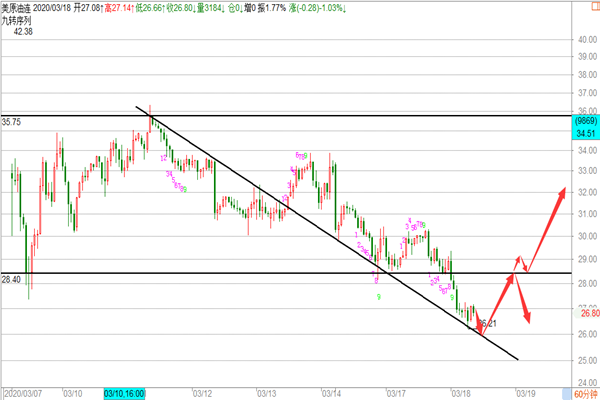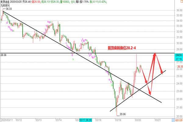 今天是2020年3月20日星期五, 本周的最后一个交易日,隔夜的黄金倒霉什么波动,原油随着特朗普对此次油价战做出了回应,导致原油隔夜大涨了700多点,收回个前日的所有跌幅,那么现在你可能会明白原油不是你想多就多你想空就空的,这种行情虽大,但不可控因素太多,不知道啥时候沙俄再出来刚一波,你也不知道美国啥时候在发个声明声明,但你只需要知道油价到现在的价格,沙俄应该还是可以抗住的,沙特大概在15-18美金的成本,俄罗斯大概在20-25美金的成本,美国的成本最高40-45成本,所以就这个来看原油不要追空就行,底部会在哪里我们谁都不清楚,现阶段的行情会比较难做,以基本面为主导,其中还惨杂着政治方面的因