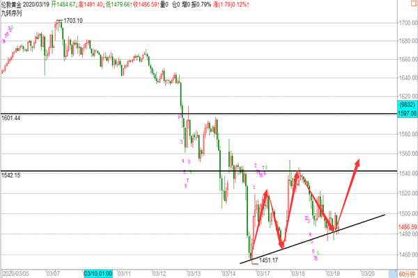 今天是2020年3月18日星期三, 昨晚熬的比较晚,今天起来晚了,明显感觉到身体很不舒服了,后面还是要合理的安排时间,尽量抽出点时间去锻炼下身体,这也是我们这个行业的通病,跟北美时间完全是白天黑夜颠倒这的,经常熬夜也身体吃不消,腰酸背疼,现在在乡里想去按个摩也没有地方,大家也好主意身体,早起早睡身体好,隔夜黄金如期走出一波90美金的反弹,这个幅度对于现在的黄金来讲已经是司空见惯了,连着四天都是90美金的行情,昨天黄金我们在文章中也一直强调要以确认B反底部做一波反弹,我们在盘内1477-76区域布局多单,盘内顺利在1530的目标位止盈,大赚了50多美金,晚间提示在1640-42这里空了一次,目