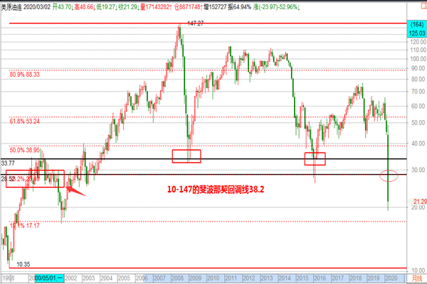 今天是2020年3月19日星期四, 隔夜的金油股市再次出现了集体暴跌的局面,美股短短两周时间触发了四次熔断机制,黄金昨天一度出现了70美金的回撤,原油出现了700点的跳水,跌至20美金最低点,这一波原油在沙美俄之间博弈加上美股的四次熔断,出现了自本月初以来的2800多点的跳水,这一波节奏是史无前例的,从没有历史可以参考,不管是1990年的海湾战争还是08年的金融危机,从没有出现过一个月有如此大的跌幅,你就看美股也就清楚了这一次的原油有多夸张,从沙特史无前例的调低油价预期再到增产开始,加上疫情的助攻,使得原油这一轮跌势注定要载入史册,隔夜我们在下方的24-25区域尝试性的轻仓多原油,都被扫损出