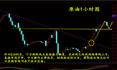 杨嘉翌:7.30原油下周一是高开还是低开?非农周走势预测 【原油沥青周一是高开还是低开?】 我们来看看关于套单的问题。市场在走,每天都有人不是套了多单就是套空单,我记得我以前说过这么一句话,单子套了怎么办这个问题本身就很有问题,说明你压根就没带止损或一直存在侥幸心理 原油:从目前走势看,反弹到42美元附近