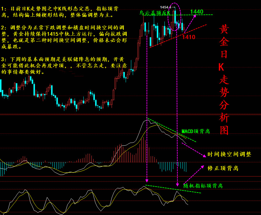 昨晚黄金延续振荡行情,金价最低至1414回稳,美盘下半段金价有所回升,金价最高至1427,美盘金价最终收盘于1426,金价K线呈阳线涨幅0.59%。今日(周二)亚市现货黄金开盘1426,最低在1422,最高在1426.78,目前金价在1423附近整理。 昨晚重要数据较少,金价持续区间振荡运行,市场继续等待美联储FOMC的议息会议决议,美联储将在周三会议结束后可能宣布降息。周五将公布美国7月非农就业数据,预计将增加就业人数16.5万;6月非农新增就业人数22.4万。 目前市场普遍预期美联储将会实施逾十年的首次降息,从以往美联储政策周期看,美联储19轮宽松周期中有9轮以衰退告终,包括最近的3轮。