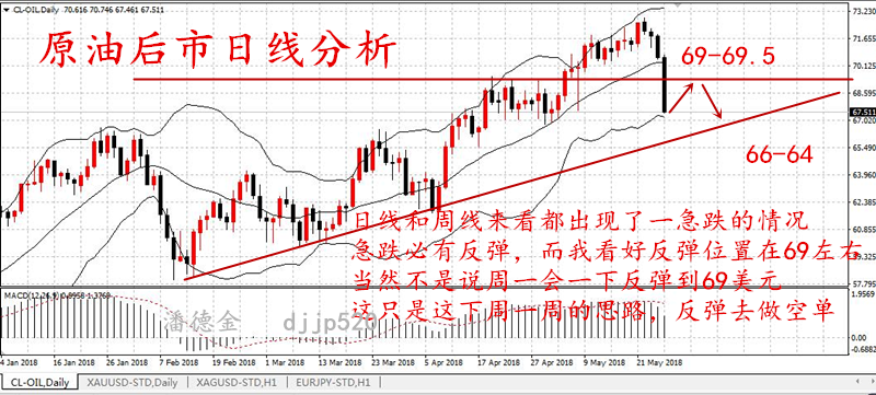 年轻时,总是喜欢逢人讲自己的理想,因为没有顾虑,高谈阔论,随心所欲,没有任何束缚。后来,只是和几个好朋友谈谈未来,开始有所保留,现在,很少与人谈及生活及未来,才开始明白,与他人无关,只会在夜深人静时仍然敲打键盘,热爱是发自骨子里的坚持,从锋芒毕露到深着冷静,不断的变着,唯有初心未改,年轻时的梦依旧在心中。 原油方面:还是非常符合我们的预判的,上周五大阳之后,收复了前面的跌势。其实在月线,周线中长期看涨或者小牛市的背景下,我们始终没有动摇原油中期的强势多头表现,而且之前也曾经提过72.8的日线空头回调有可能在64.2企稳。 上周五大阳之后,周一我们提到关注缺口位置的压力以及日线停顿修正,关注做