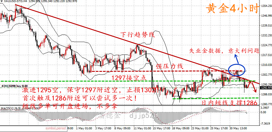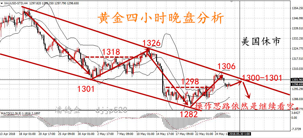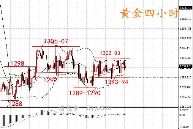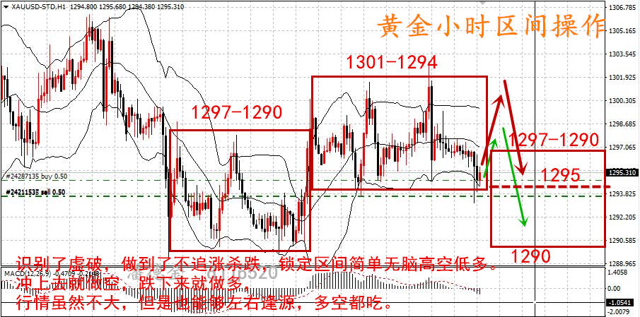 心若被困,处处是牢笼,心之所安,矮瓦斗室是天堂,如果不曾开始,永远不可能抵达,如果不曾努力,永远不可能圆梦。行情像是倒在手心的水,无论你是握住还是摊开都会因为价格向右的移动而慢慢流淌干净。要的不是诗和远方,而是此处你帐面的盈利。 一周又要结束,黄金本周高点1303,低点1290,波幅13美金。上周非农周波幅17美金。而且我们看到本周前面四个交易日日线3根十字星,一根小阳线,典型的窄幅整理。道理我们还是要讲,最近2个周破了前面的下降通道走势,但是走的是不规则的整理,有以下几个特点需要注意: 1.中间价格不入场,容易误扫出局。比如当下区间大概上方1298-1302压力区域,下方1294-1290