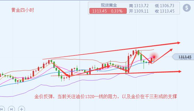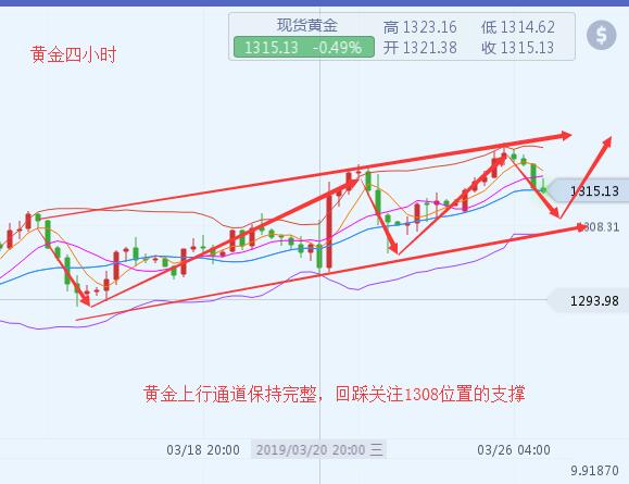 沐舒阳:3.26黄金白盘走空晚间还好延续下跌吗 最新行情走势,日内金价开盘于1321而后金价短幅上扬23位置,后市金价一直短信啊受挫回落至1315位置,当前稳定在1315上方震荡,短线看来已经企稳该点位了,原油方面油价一直处于短幅上升阶段,日内原油开盘于59美元,短线上虽然上涨幅度不大,短线高点也就值到达了59.4位置,而日内我们在59.1进场的多单现在还在继续持有中,后市关注油价60美元给出的压制。 黄金,日线上看来昨日美联储继续放出鸽派消息,致使金价短线走高,最高到达1324一线,日内金价高位受阻,短线上已经回踩至1215位置,凌晨时分,我在午夜精评中有写到,黄金在近期入股不能有效的突破