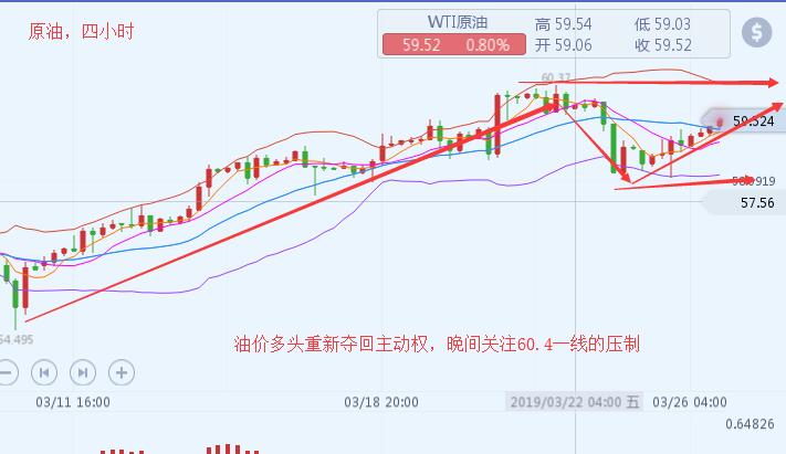 沐舒阳:3.29油价强势反弹,收官之战原油如何布局 昨日油价强势下行至58美元一线的之后,午夜顺势反弹的走势,短线上触及到了59美元,日内白盘油价延续昨日多头走势,短线继续强势上涨,短线上再度顺势破位60美元的强势助阻力位置,到目前位置,油价有再度回升到60.2美元的位置,在本周周三的时候,我们选择在60.2美元去布局空单,昨日原油强势回踩至58.1位置,短线上我们的空单斩获2个点的利润,今日油价又迎来了第二个60.2美元,又逢周线月线双线收官,晚间原油应该如何去布局,才能在获得更好的盈利呢? 原油,日线上油价再行走了多头趋势,中线上看涨是没有任何问题的,而且当前油价的整体趋势在上行方面都是