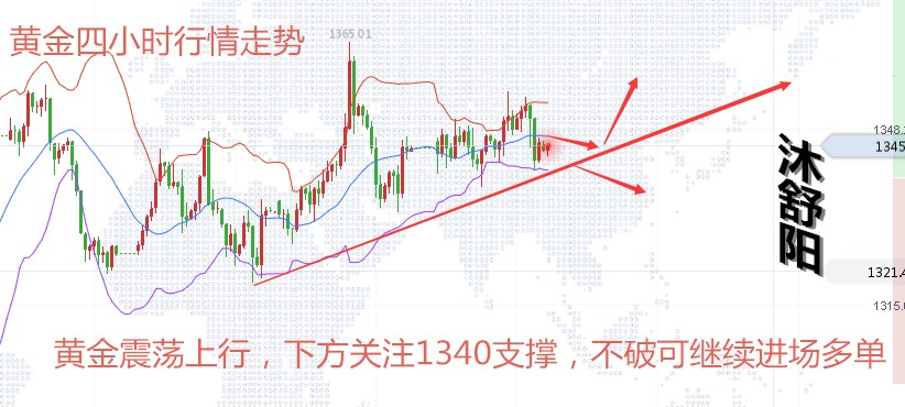 沐舒阳:4.19黄金结束震荡上方关注1366阻力空单被套怎么办 黄金看多策略要坚决执行下去 ,目前短线目标看1366阻力,破位上方可以关注1375,目前在四小时线上看来 ,黄金在美盘开盘后,也是结束了本周以来正当的趋势 ,直接上涨到1355一线,我在我的文章中也是多次提到过,黄金无论怎么震荡,坚决去做多单,宁愿错过空头