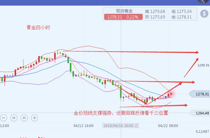 沐舒阳:4.22金价日趋震荡后市黄金回踩关注近期低点1270 近期美指将会出现一波短线上的回踩,这给金价短线上提供了一些支撑,而白银一直作为黄金前瞻做走势的一个风向标,却一直平缓的运行着,这也从侧面影响到金价在短线上并不会出现下行趋势,而近期国内五一假期将近,国内为了促进消费,黄金将会变相性的得到大幅抛售,后市金价资源紧张,中期来说,金价也会在后市走一个预期性的上涨。 四小时中阳覆盖后震荡走势,短线还有冲高测试压力的需求,所以日内需要注意亚欧盘冲高力度以及测试1280一线的压力,短线上金价在1270位置纯在支撑,走势趋于震荡,短线上操作,还是建议以回踩做多位置,下方重点关注1270、1260