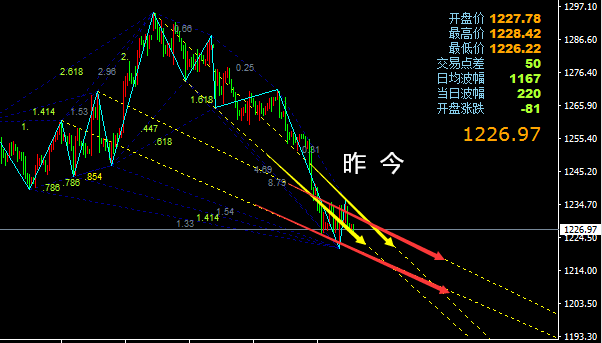 国际市场黄金价格昨日再度下挫,美式尾盘价格最低回落至1214.25一线,触及8周低位,马克龙在发过大选中获胜及美联储加息预期继续提振美元和美股债券,市场风险情绪消退,金价承压,早间开盘在短期的级别的指标修复循环当中,价格所试探的高点位置,刚好是昨日我们提及的再次去跟进空单的点位1224,整体还是符合预期的思路,