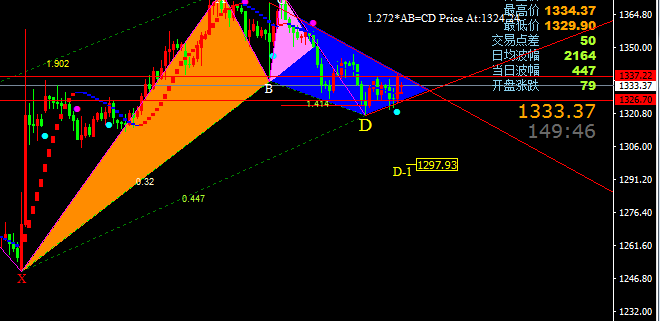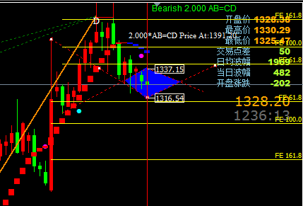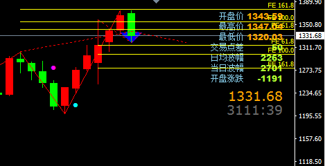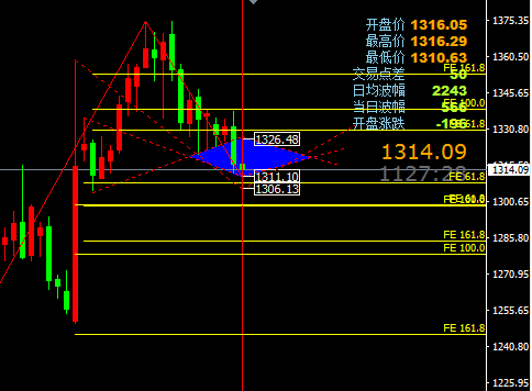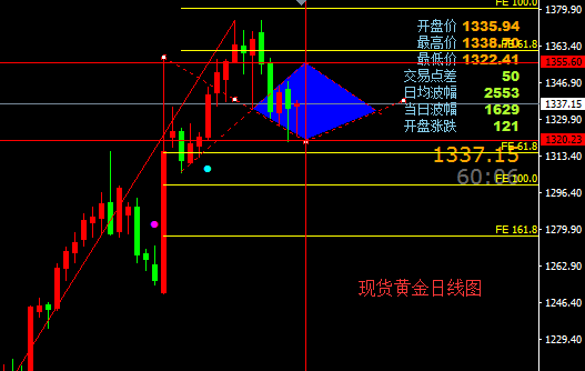 现货黄金 现报价1329.86,上周整体走出一个冲高回落格局,周初开盘试探年度高 点1375一线未破开始回落,周三、周四、周五都是同样的格局,延续弱势,下跌 后 涨,探底回升,周四至周五连续报收的是带长下影线的阴柱或阳柱,说明在132 0-2 2一线存在比较强的支撑,该位置也是我们当前下方需要支撑位,而随着低点 逐步抬 高,