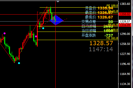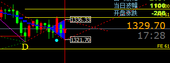读而思: 国际金价上周震荡回落,结束了六周连涨的势头,至周二午盘时收报于1329 美元 /盎司附近,本周的市场聚焦点是周四的欧洲央行利率决议, 欧元 区能否走强可能会给黄金带来一定的支撑,技术层面上来看,黄金早间开盘于1331一线,而后价格维持高位横盘,亚盘时段价格快速的试探上方的高点位置最高触及1338一线,击穿了