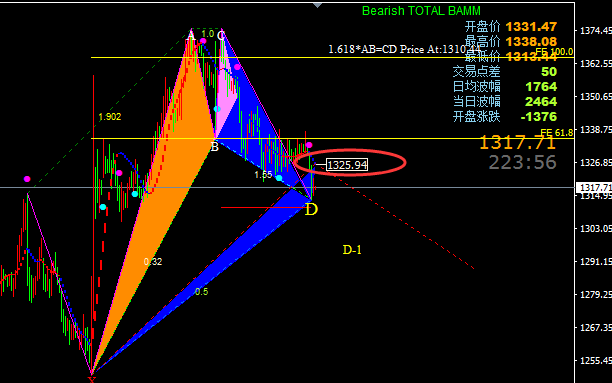 黄金现在的价格在1332一线,早间黄金开盘于1332,试探四小时布林带中轨一线,最高触及1334.37一线,受阻回落,从短周期小时图以及四小时来看依旧是维持小区间窄幅震荡,早间价格冲高回落,下方受小时图中轨一线支撑有小幅的反弹,短期上方需要关注的点位在1334以及1337一线, 空仓的触及1337一线去进场空单,短线目标关注1