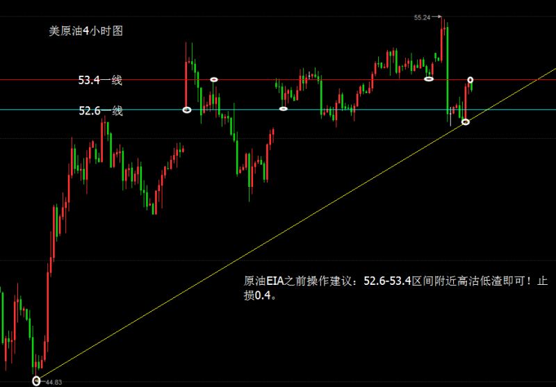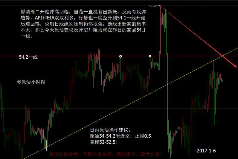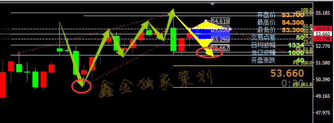 原油、白盘晚盘总结:(1.5) 北京时间周五(1月6日)美国能源信息署(EIA )公布数据显示,美国12月30日当周EIA原油 库存骤降705.1万桶。数据公布后油价短线下跌约0.5美元,价格最低回落至52.77一线,有关注过笔者策略实时更新的朋友应该有看到,白盘多次强调回踩该点位去布局多单,晚间因为数据的影响,该点位也是按照预期
