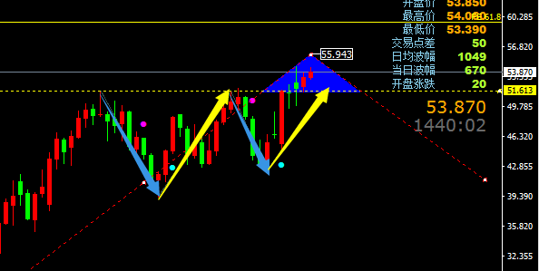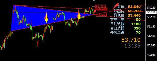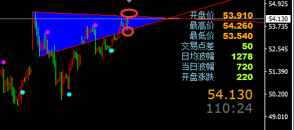 晚盘总结: 一切都是显得那么自然,原油54.08,美盘时段价格最低回踩至53.5一线,按照预期进行了一次指标的回落修正,反弹的波幅利润也是围绕在54附近,对于晚间原油而言,我们不排除会有第二次回踩的可能,从四小时蜡烛图的收线情况来看,原油尾盘后时段触底反弹并不是伴随着量能的变化而形成的,也就是说这一波反弹相对比
