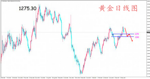 心辰说市:黄金守住1255支撑还是多 原油迂回震荡反弹50空 黄金周二冲高回落,由于受到周一的假期休市影响。昨日开盘亚市盘中急速冲高1270.50高点,探高不破高,最终承压回吐。美市盘中由于数据对金价形成一定打压。4月美国个人消费支出和收入均上涨并符合预期,但通胀指标仍未达到美联储2%的目标设定。美国5月消费者信心指