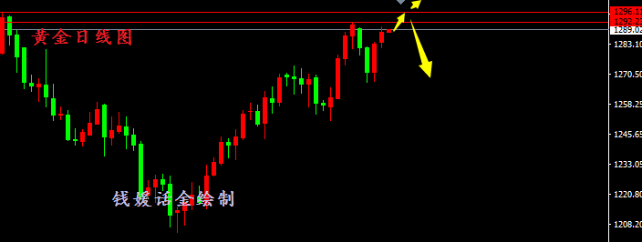 黄金自周三凌晨企稳1275后大幅上涨,目前依然面临前期强压1290-1292一线,不过就目前来看,多头虽然势猛,但上涨动力有所不足,现在不论是小时图还是日线图,整体还处于多头趋势,所以操作上建议回调做多为主,今日周线收官,而且黄金目前处于高位,谨慎追多,上方重点关注1296,只有破了1295我们才能看1300,下方关注1281-