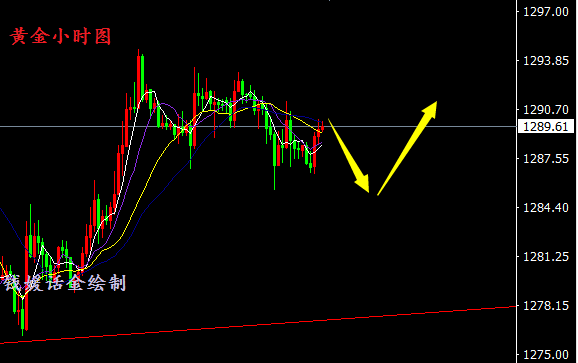 --黄金午夜分析-- 黄金近一个月处于区间震荡,于上周五单边上涨20美金,突破1288-1292区间阻力,昨日日间小幅震荡,午夜冲高1293回落,受德拉基讲话影响及机构砸盘,黄金回吐周五全部涨幅,并向下延续跌幅至1274附近,目前美元指数下方获周线支撑,再度涨至94美元上方,但钱媛认为这也仅仅只是反弹,整体空头趋势依旧未改,